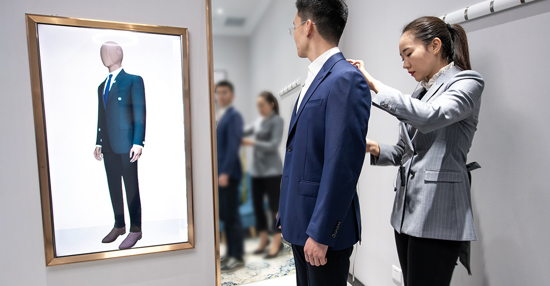 小酷APP定制交互系統(tǒng),多語言、移動化實現(xiàn)數(shù)據(jù)采集、可在7秒內(nèi)完成對人體19個部位22項尺寸數(shù)據(jù)的自動采集,解鎖人體密碼。